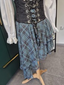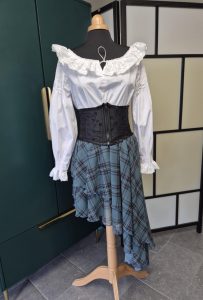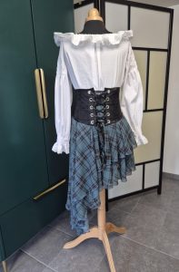 Avec son corset brodé et sa jupe motif tartan aux volants légers, la tenue incarne l’âme fière et libre de l’Écosse. À la croisée des temps, elle évoque une héroïne des landes, entre tradition et féminité rebelle.