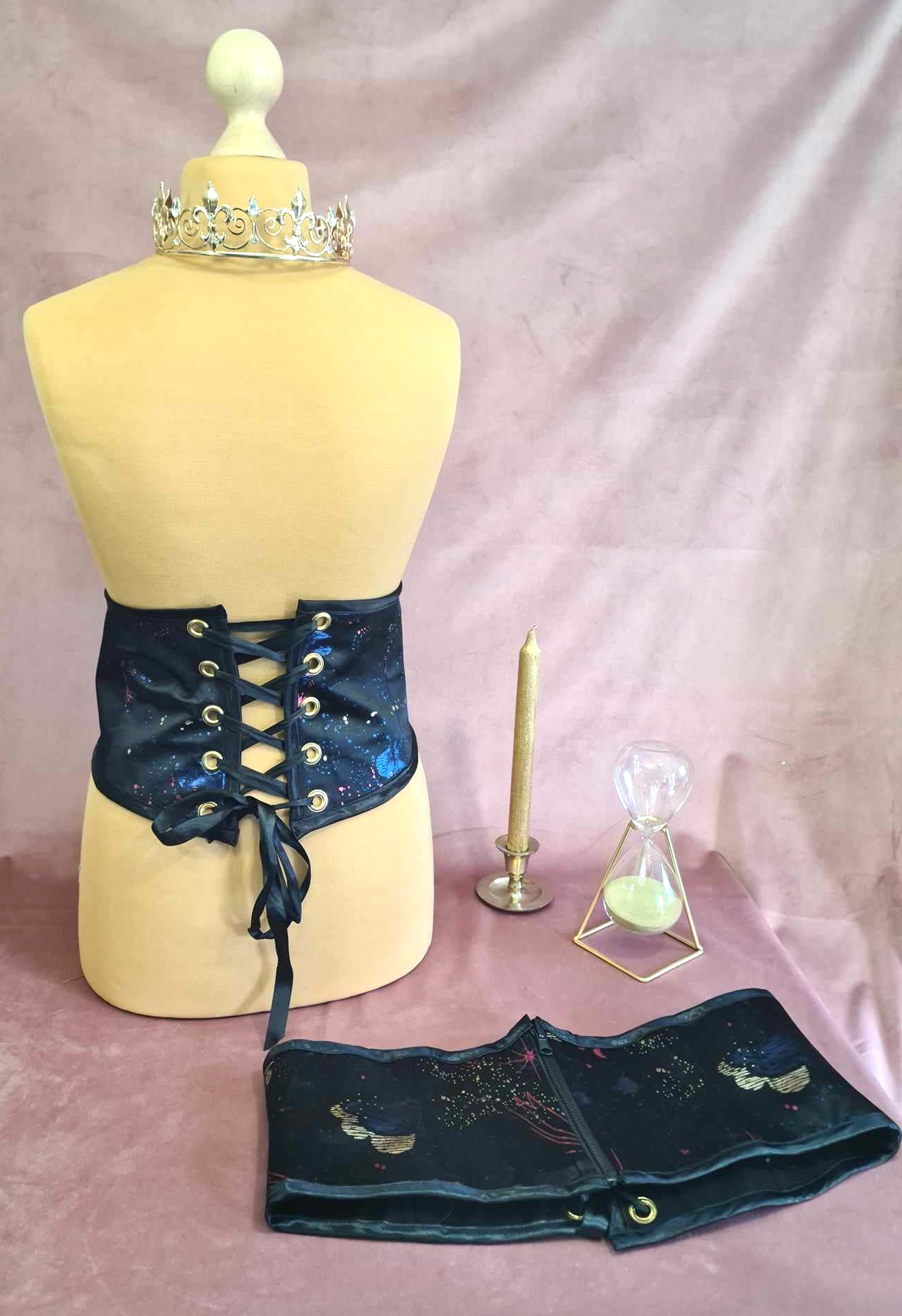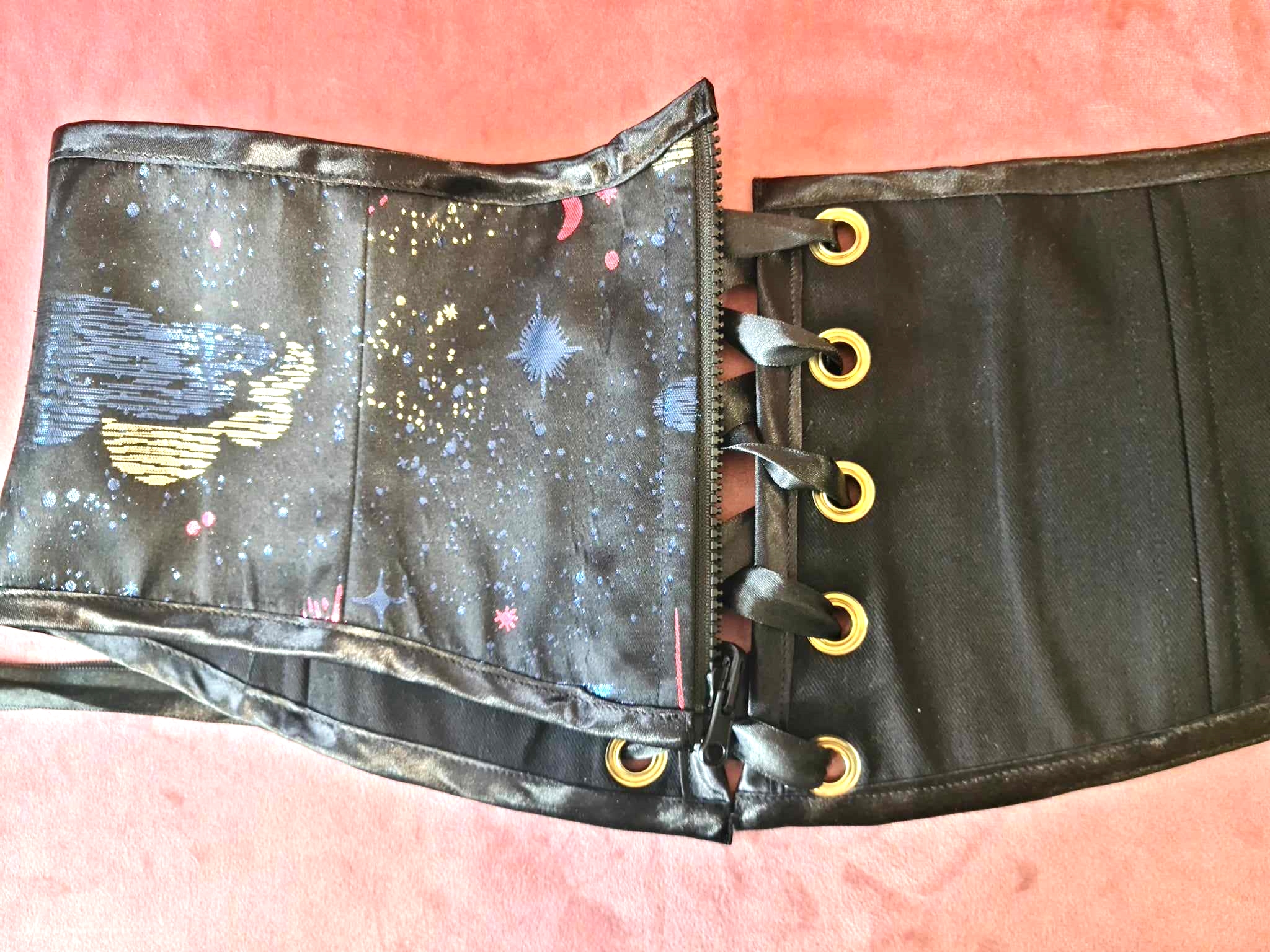 Il permettra de marquer ta taille pour te mettre en valeur et il s’arrête sous la poitrine. On peut le porter par dessus un chemisier, une blouse, une robe ou simplement avec un t-shirt et un jeans !Et pour mieux en profiter je les ai fait réversibles ! Un coté uni et l’autre avec un motif. Il se ferme par une tirette spéciale devant qui permet de l’utiliser des deux côtés.